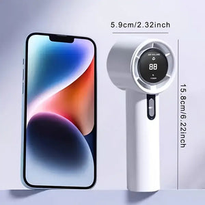 Portable Handheld Turbo Fan – 5–8 Hour Battery, 13,000 RPM Brushless Motor, 9m/s Wind Speed, 100% Adjustable, USB Rechargeable Mini Fan for Indoor & Outdoor Use