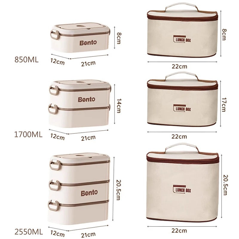 Stainless Steel Thermal Food Container with Bag – Leakproof Travel Bento Box, 1–3 Layer Lunch Box with Compartments for Kids & School